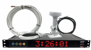 The rack mount device can be placed anywhere within the network layout. The built in high sensitivity GPS receiver is able to lock on to multiple satellites, in some cases, from within many buildings or from a window location. The dome outdoor antenna includes 25 feet of antenna cable, plus another 100 foot extension cable for a total length of 125 feet. Additional cable may be added as needed. Up to 325 feet of low-loss 70 ohm antenna cable can be used without signal loss. |