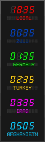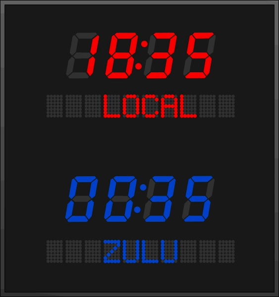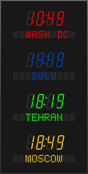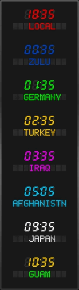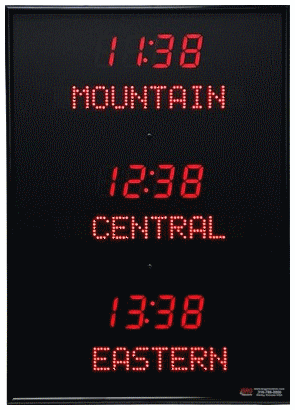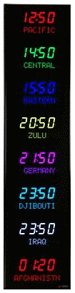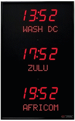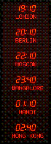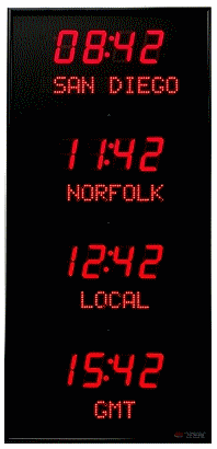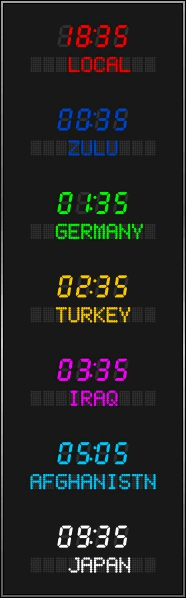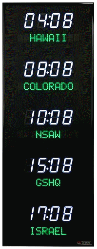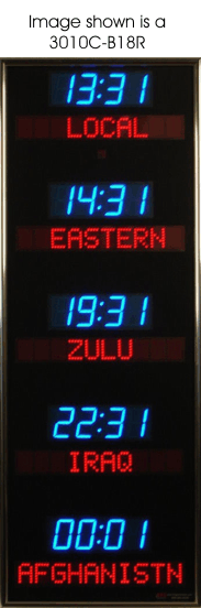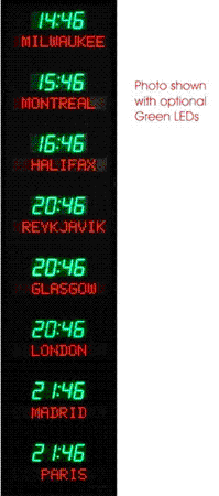 The 3010 series LED digital world time zone clocks have bar-segment LED time
