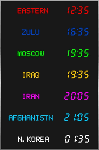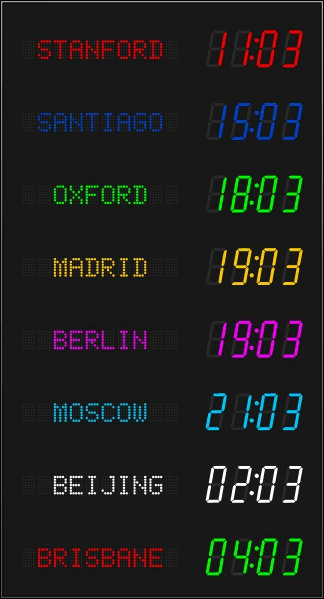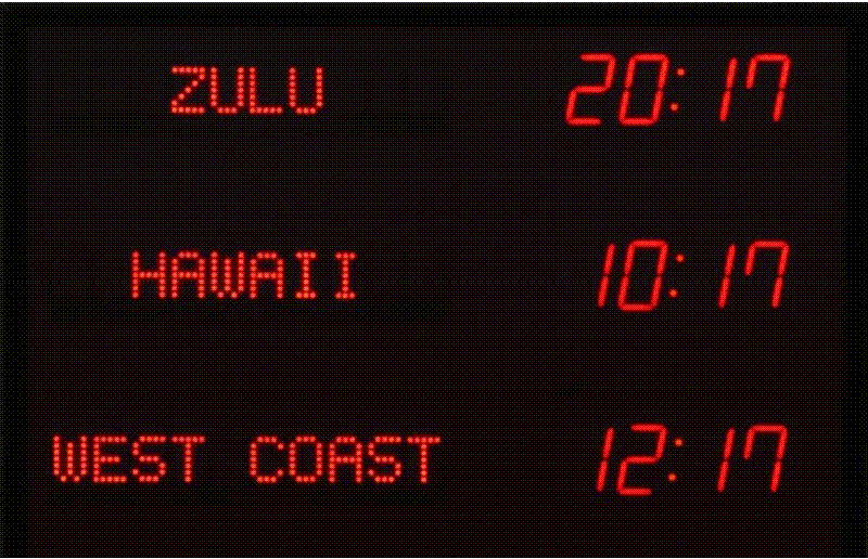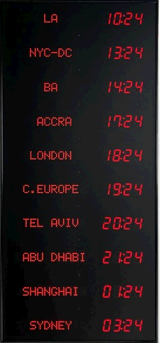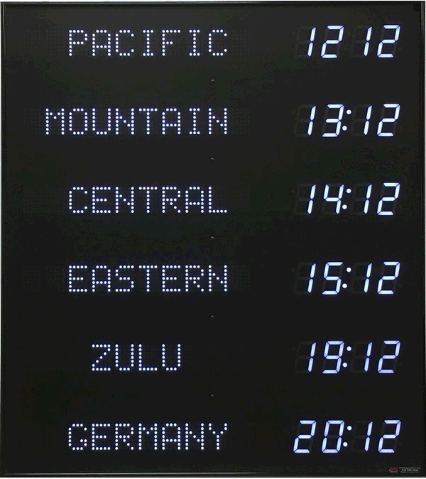 The 3420 series LED digital world time zone clocks have bar-segment LED time