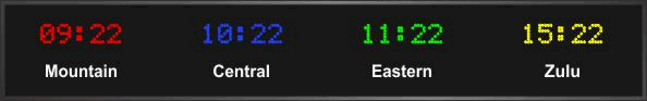 Even though our fixed zone time zone clocks come with an IR remote control to change LED zone color and brightness, BRG offers the Time Commander Option.