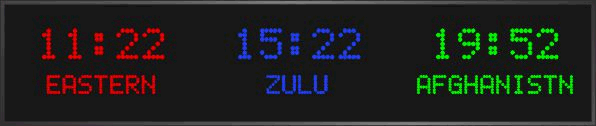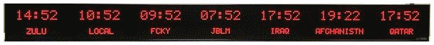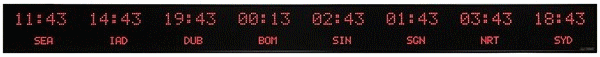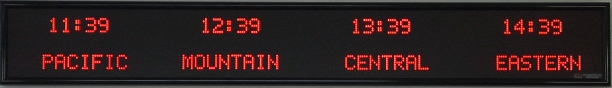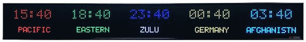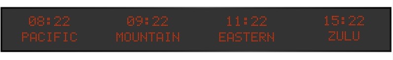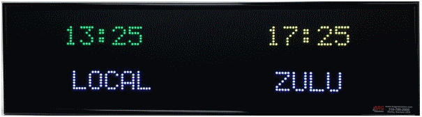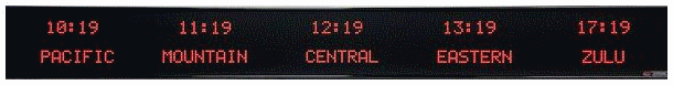 clocks have 5 character dot matrix LED time displays with a ten character dot