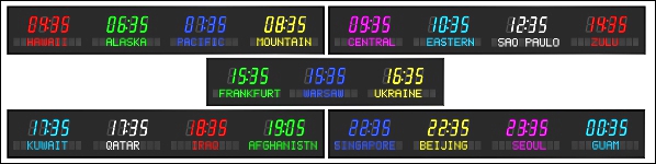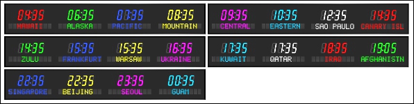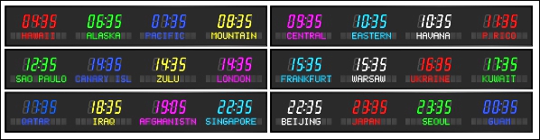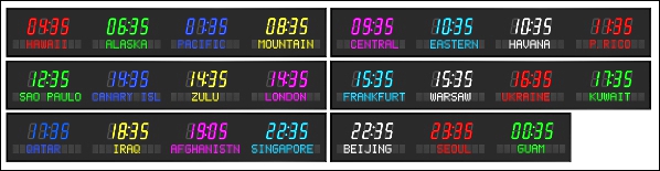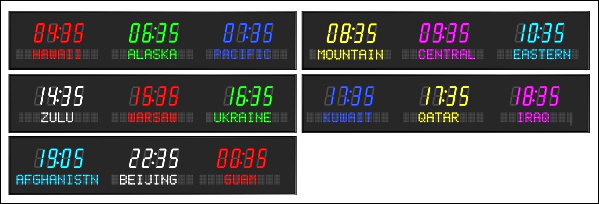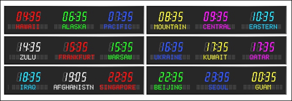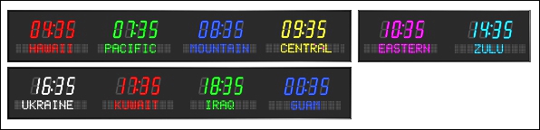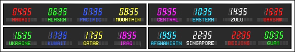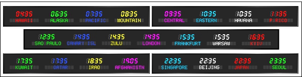 BRG Time Zone Clocks are accurate for life without the need for manual or external time updates. A GUI touch screen IR remote control is available to ease configuration. BRG's 6610 series allows you to change the color of any zone or zones with ease.