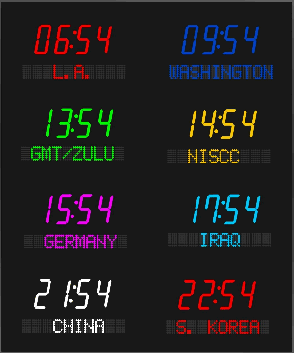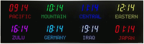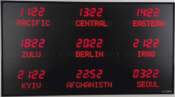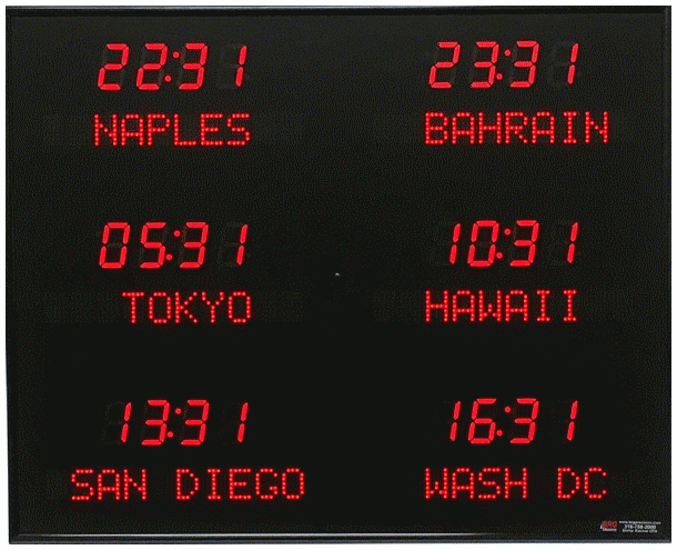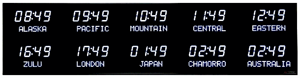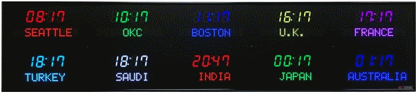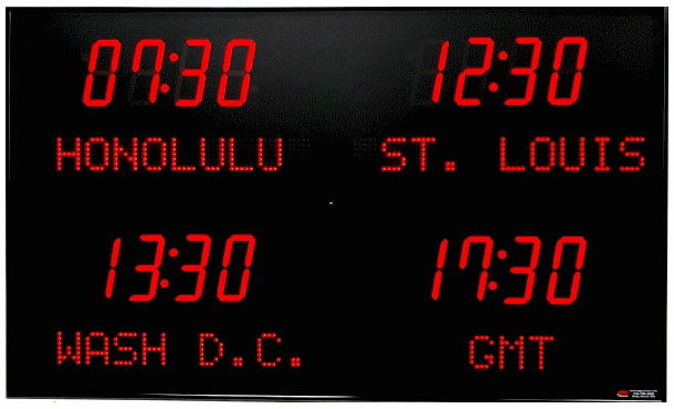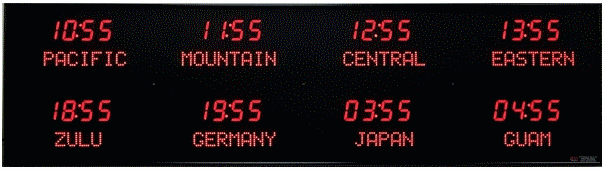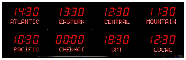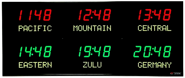 8 Zone Clock with 1.8 " red LEDs for time, .2" green dot