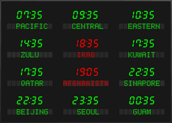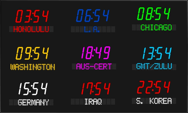 LEDs for the zone labels & green 1.2" dot matrix LEDs for the date.