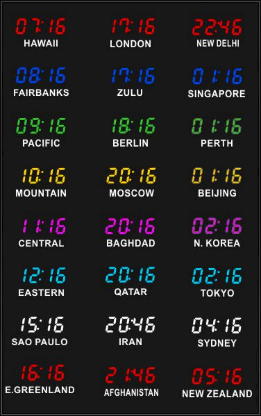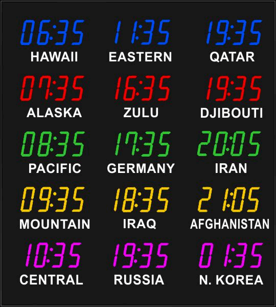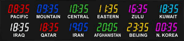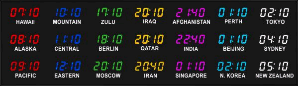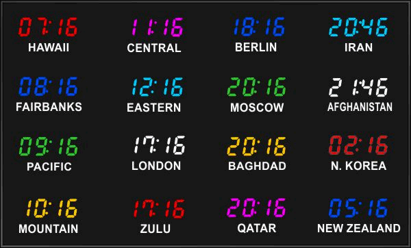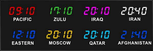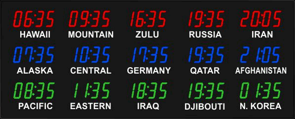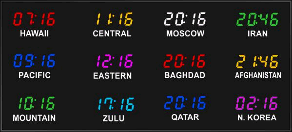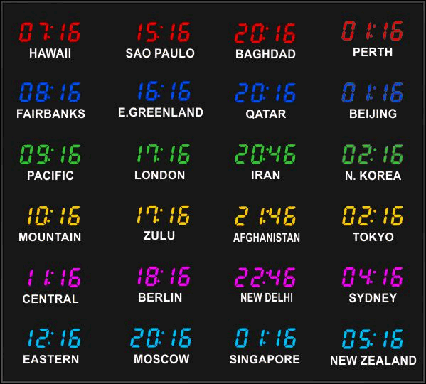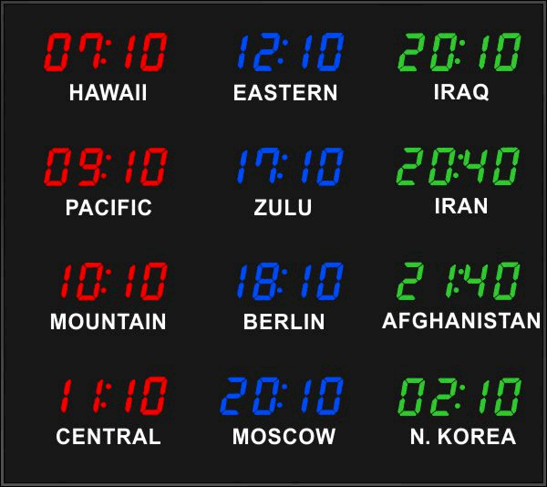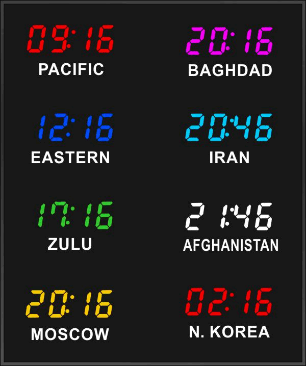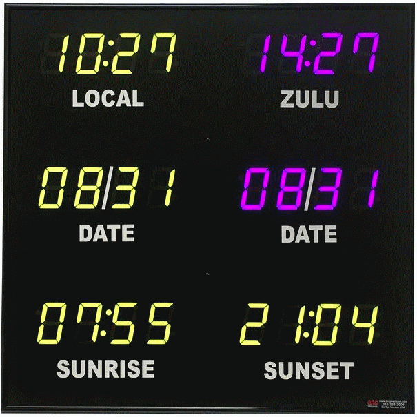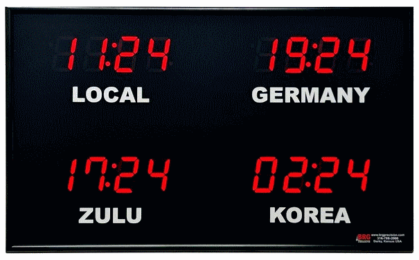 Even though our fixed zone time zone clocks come with an IR remote control to change LED zone color and brightness, BRG offers the Time Commander Option.