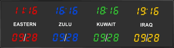 BRG 663K User Changeable Multi-Color Time Zone Clock.