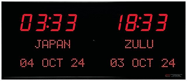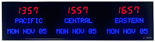 6673J | 3 Zone Clock with 4.0" blue bar segment LEDs for the Time and 1.2" red dot matrix LEDs for the date & zone labels | |