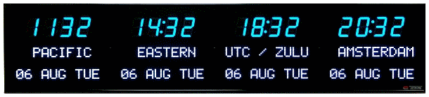 6673C | 4 Zone Clock with 1.8" blue bar segment LEDs for the Time and 1.2" yellow dot matrix LEDs for the date & zone labels | |