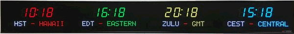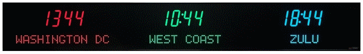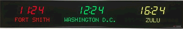 bar-segment LED time displays with fifteen character dot matrix digital zone labels