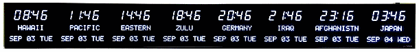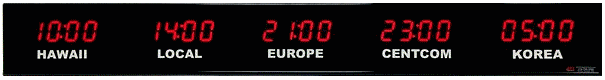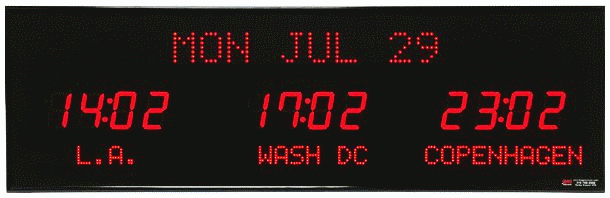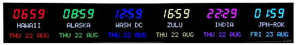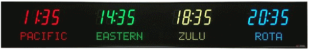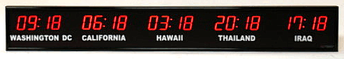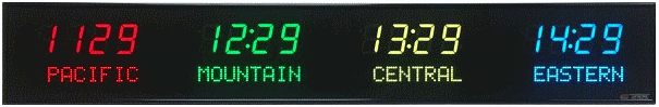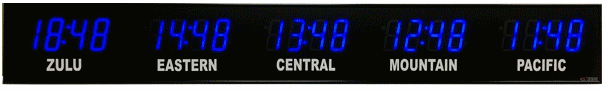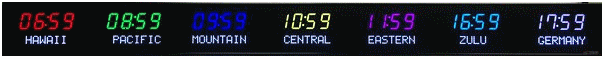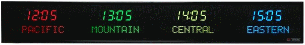 BRG maintains an inventory of in stock time zone clocks. These are our best selling units. We currently have select models of the 661, 668, 6610, 6618 and 6673 styles ready to ship to you. All we need is the time zones you want to display and the LED colors you would like programmed. These unit will ship to you in 1 week. Quantities were updated on: 01-30-2025 (Quantities Updated on Monday and Thursday) Style 661 - Fixed Zone Time Zone Clock |